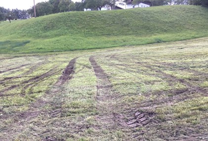• Dort, wo es in den letzten Wochen viel geregnet hat, muss auf ein Boden- und narbenschonendes Arbeiten gesetzt werden. Ein angepasster Reifendruck und ein langsames und spurversetztes Fahren schützen Ihre Grünlandnarbe und erhalten den ertragreichen Aufwuchs.